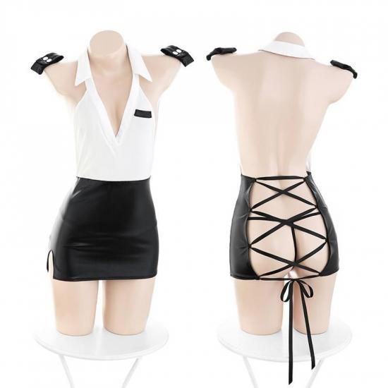 【Meltmeオリジナル】セクシー秘書コスプレ | 深V誘惑・挑発オープンヒップランジェリ